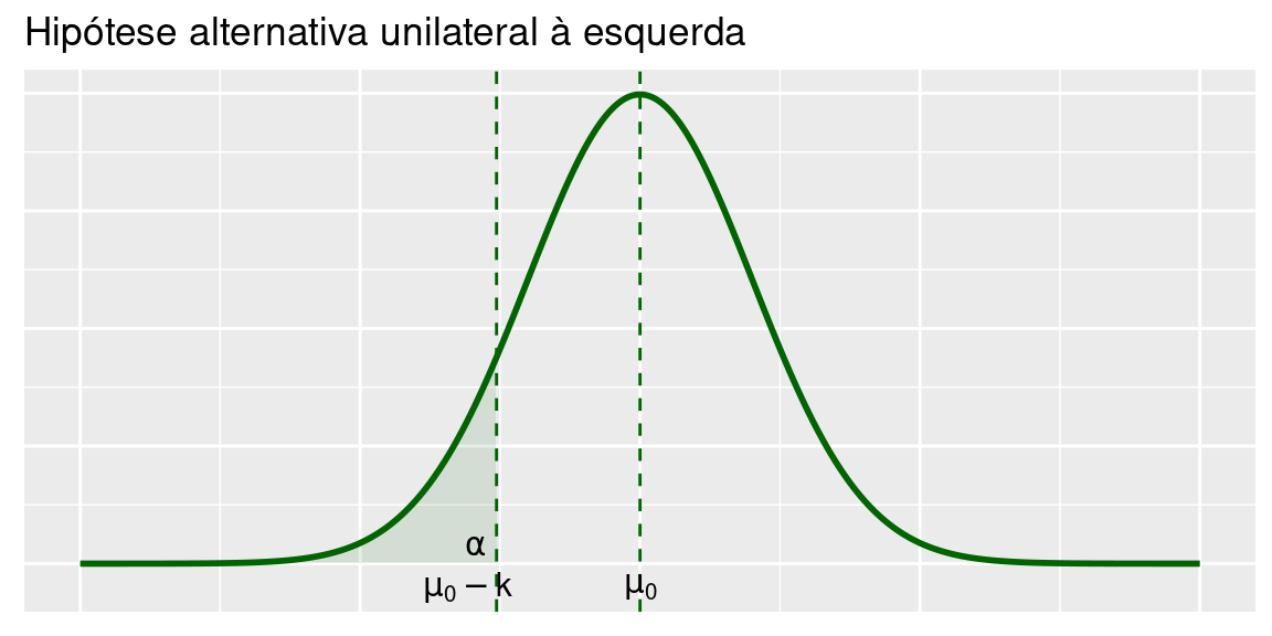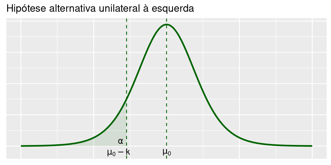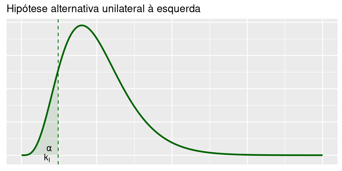 Porém, em algumas situações, podemos ter informação que nos permita restringir o domínio da hiótese alternativa. Temos, então, hipóteses unilaterais à esquerda